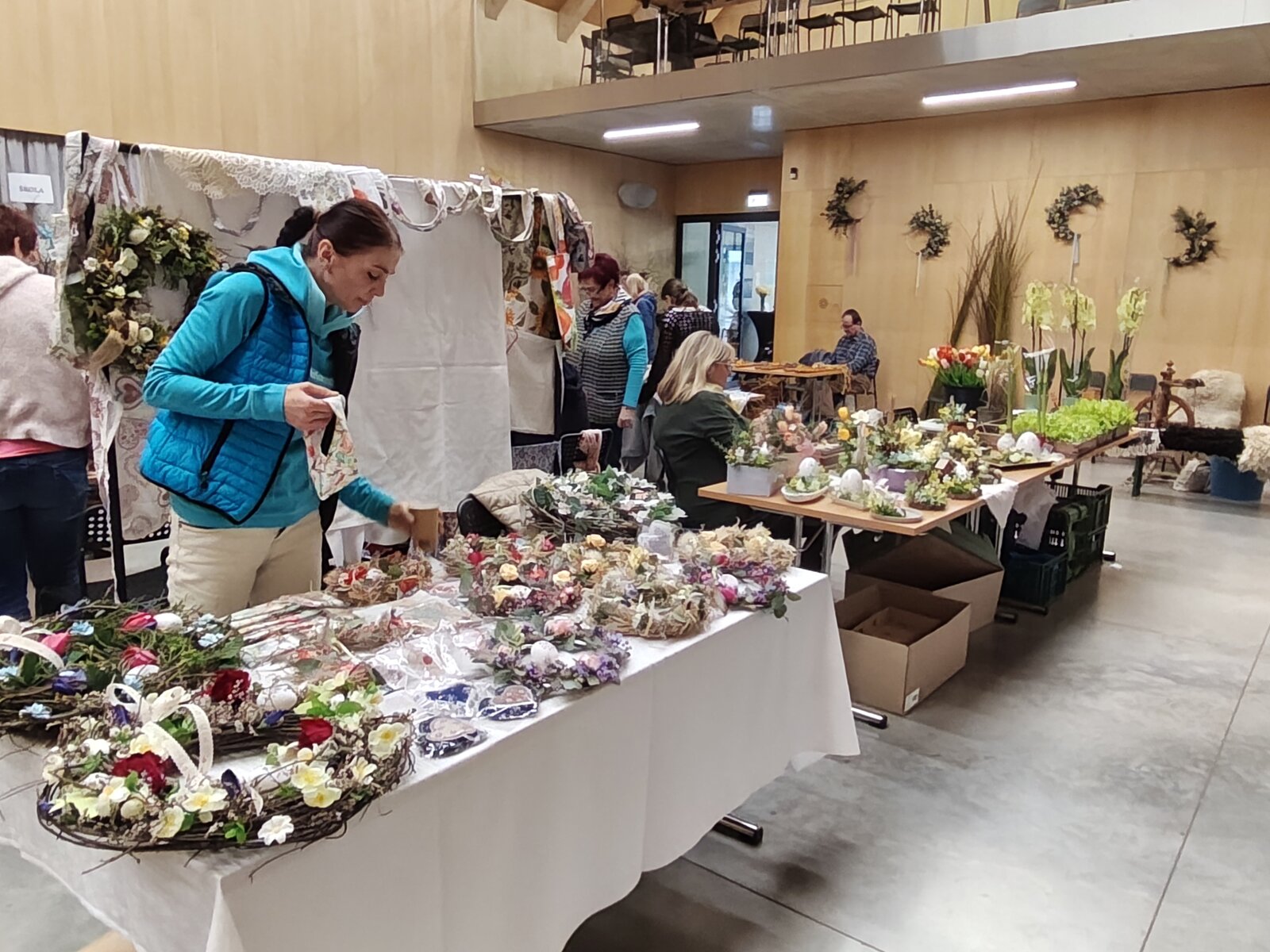 Po oba dva dny hlavní sál komunitního centra zaplnili prodejci se svými výrobky, mezi nimiž dominovaly především velikonoční a jarní dekorace. Návštěvníci si tak mohli zakoupit originální ručně vyráběné produkty a zároveň se inspirovat tvorbou šikovných řemeslníků. Své umění zde v sobotu předvedl například pekař s tradičními dobrotami jako je domácí chléb nebo proutkař, který přímo na místě pletl tatary a košíky, což zaujalo malé i velké návštěvníky. Celou akci navíc příjemně doprovázela cimbálová muzika, která zněla v malém sále a dotvářela pohodovou atmosféru celého dne.