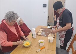 S nadšením jsme přivítali už nám všem dobře známého pana Daniela Šarka, dobrovolníka, který je bývalým pekařem, a se kterým jsme si upletli a upekli pravé vánočky na opravdu profesionální úrovni!